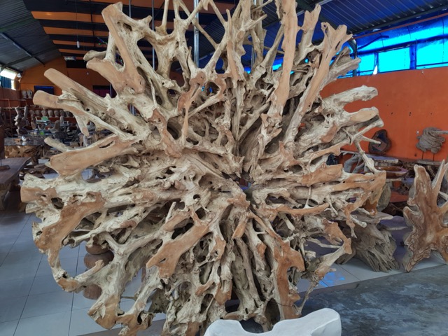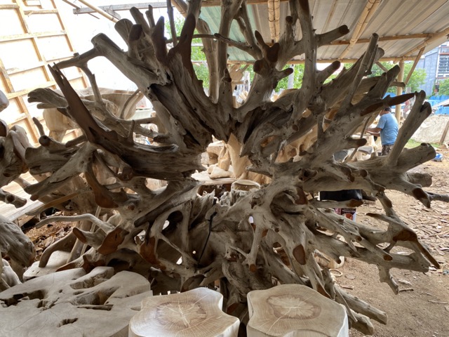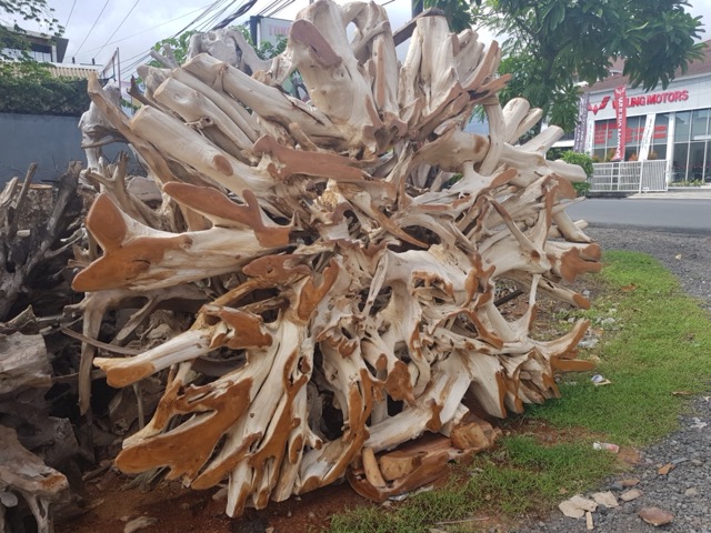 Les racines en teck qui sont ensevelies sous la terre depuis de nombreuses années sont recyclées.