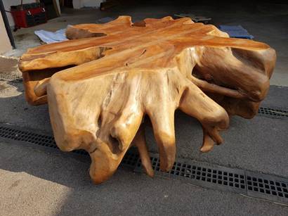 Les racines en teck qui sont ensevelies sous la terre depuis de nombreuses années sont recyclées.