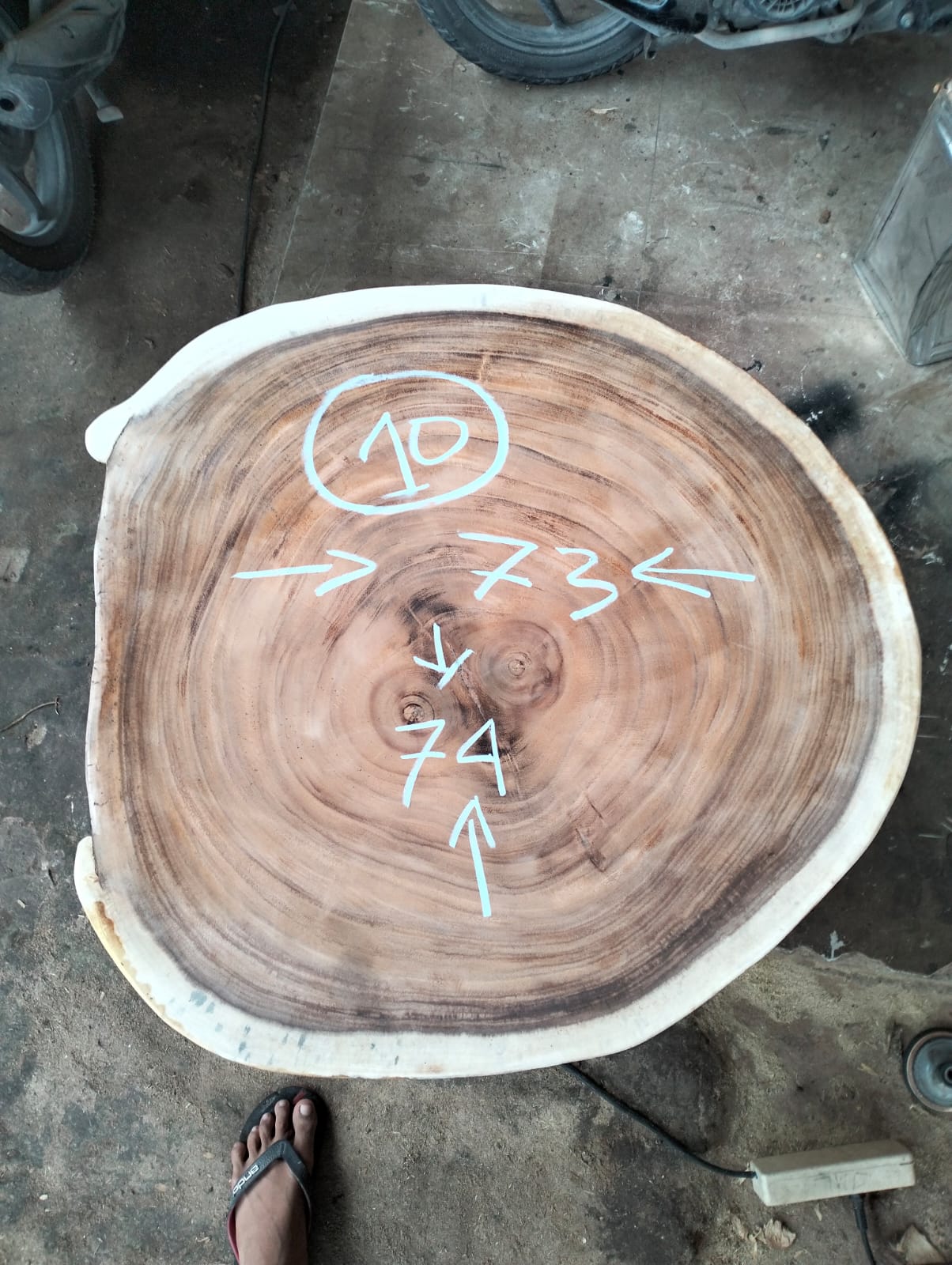 Certaines photos présentent les plateaux dans leur état brut ou patiné pour le transport, conformément aux exigences douanières indonésiennes. Ils seront entièrement retravaillés dans notre atelier en France selon la finition que vous choisirez.