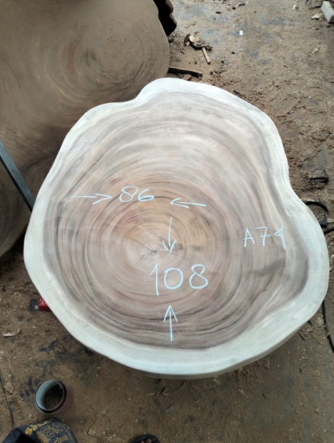 Certaines photos présentent les plateaux dans leur état brut ou patiné pour le transport, conformément aux exigences douanières indonésiennes. Ils seront entièrement retravaillés dans notre atelier en France selon la finition que vous choisirez.