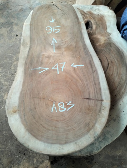 Certaines photos présentent les plateaux dans leur état brut ou patiné pour le transport, conformément aux exigences douanières indonésiennes. Ils seront entièrement retravaillés dans notre atelier en France selon la finition que vous choisirez.