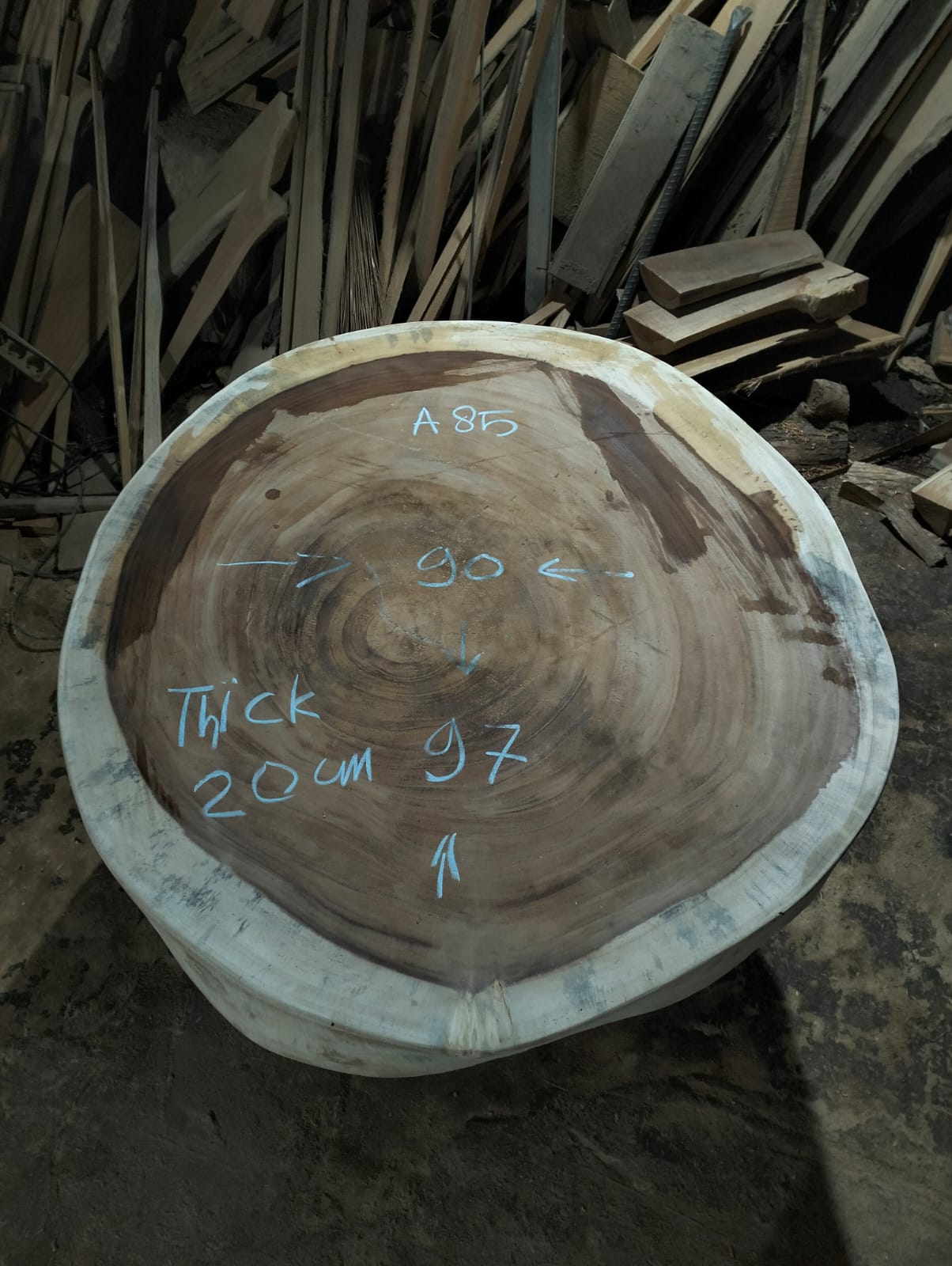 Certaines photos présentent les plateaux dans leur état brut ou patiné pour le transport, conformément aux exigences douanières indonésiennes. Ils seront entièrement retravaillés dans notre atelier en France selon la finition que vous choisirez.
