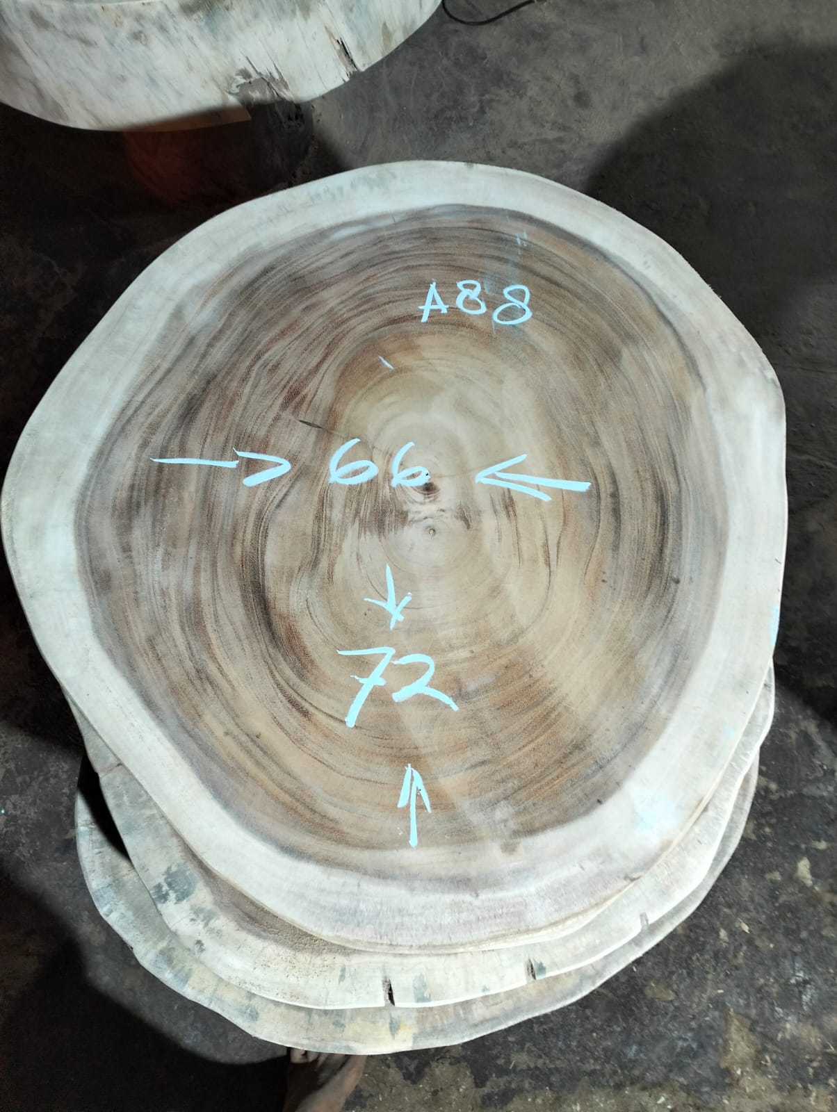 Certaines photos présentent les plateaux dans leur état brut ou patiné pour le transport, conformément aux exigences douanières indonésiennes. Ils seront entièrement retravaillés dans notre atelier en France selon la finition que vous choisirez.