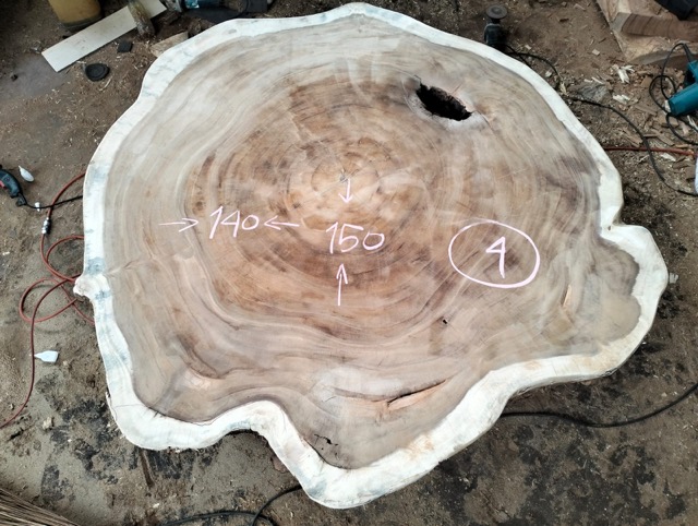 Sur certaines photos, les plateaux peuvent être dans leur état brut ou patiné pour le transport, conformément aux exigences douanières indonésiennes. Ils seront entièrement retravaillés dans notre atelier en France selon la finition que vous choisirez.