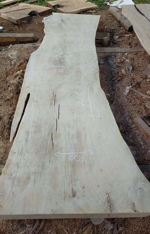 Sur certaines photos, les plateaux peuvent être dans leur état brut ou patiné pour le transport, conformément aux exigences douanières indonésiennes. Ils seront entièrement retravaillés dans notre atelier en France selon la finition que vous choisirez.