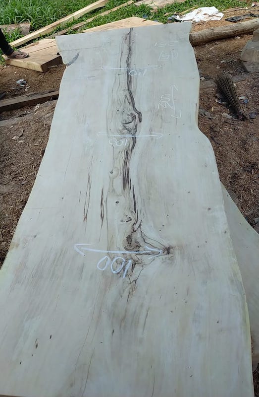 Sur certaines photos, les plateaux peuvent être dans leur état brut ou patiné pour le transport, conformément aux exigences douanières indonésiennes. Ils seront entièrement retravaillés dans notre atelier en France selon la finition que vous choisirez.